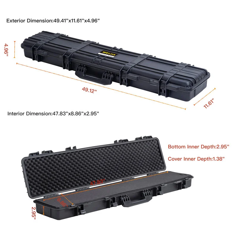 ● Buitenafmeting: lengte 49,41 inch breedte 11.61inch Hoogte4,96 inch. Inside afmeting: lengte 47,83 inches breedte 8,86 inch hoogte 2.95inch.cover binnenste diepte: 1.38inch.Bottom Inner Diepte: 2,95inch: 2,95inch: 2,95inch